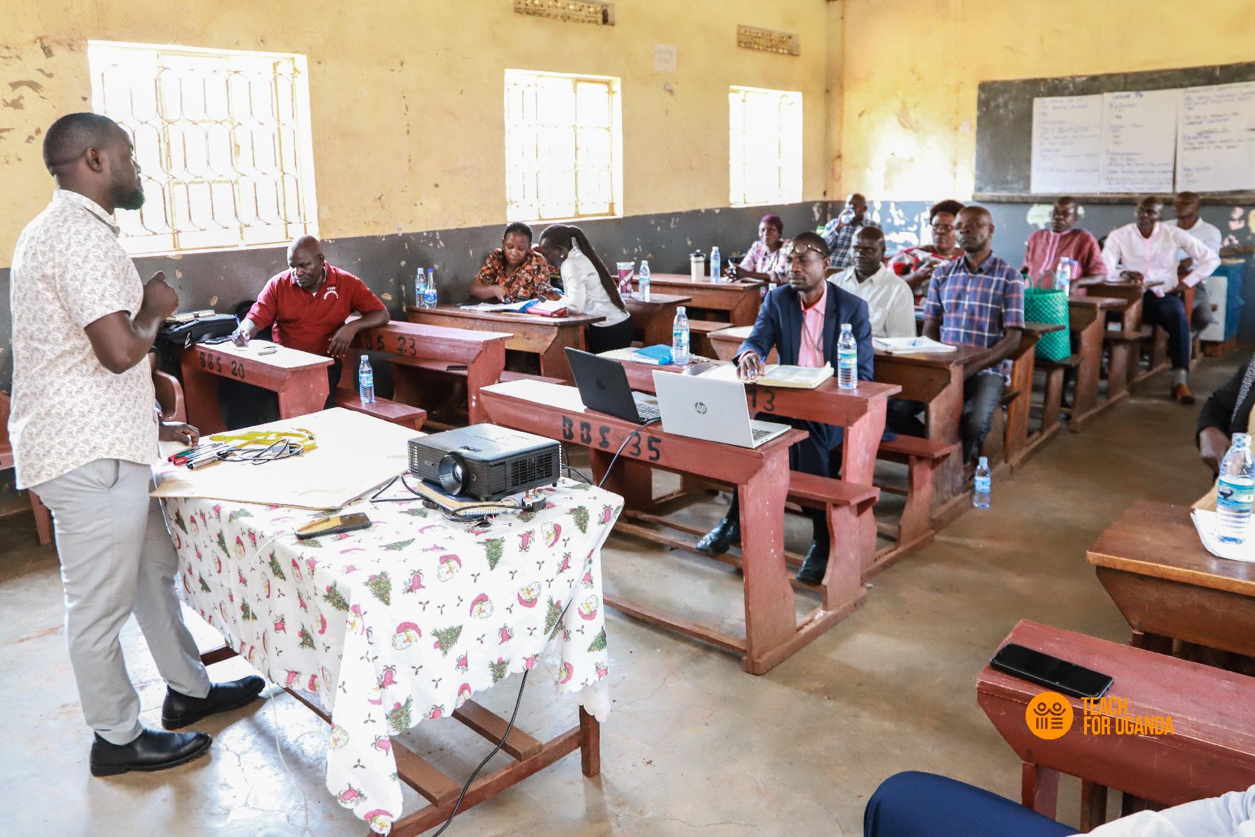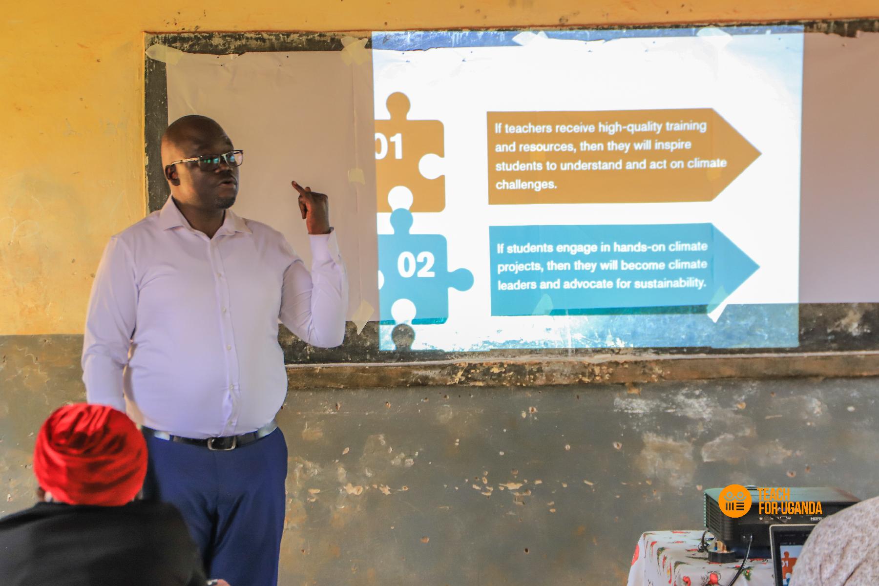 Allan Obua, Fellowship Manager at Teach For Uganda, leads the sessions on Climate Education Leadership at Bishop Brown Primary School, Kayunga District.